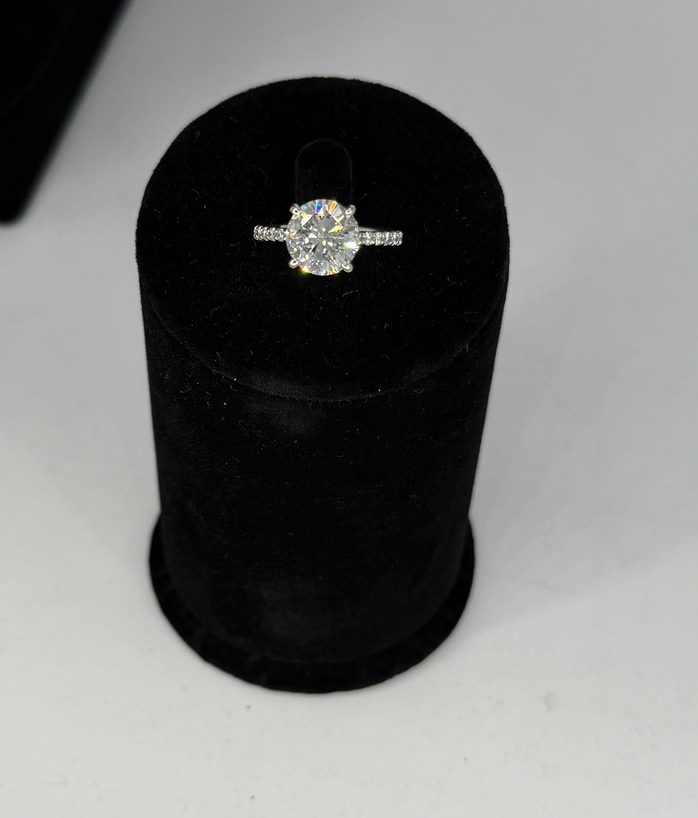 Anillo de oro blanco 18k con diamante natural de 3.01 Cts certificado HRD. Lujo y exclusividad.