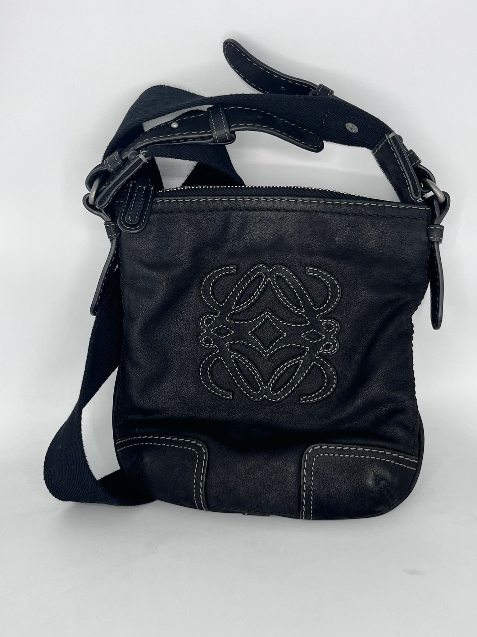 Bolso / Bandolera Loewe Anagram de cuero negro. Elegancia atemporal y diseño versátil.