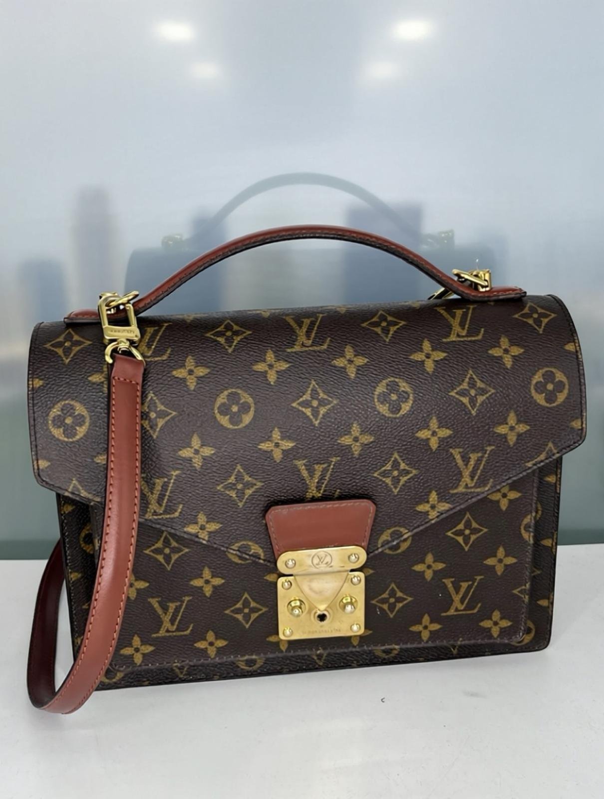 Bolso Louis Vuitton modelo Monceau confeccionado en cuero con icónico monograma, incluye bandolera ajustable y guardapolvo original. Un bolso elegante y versátil, perfecto para coleccionistas y amantes del lujo