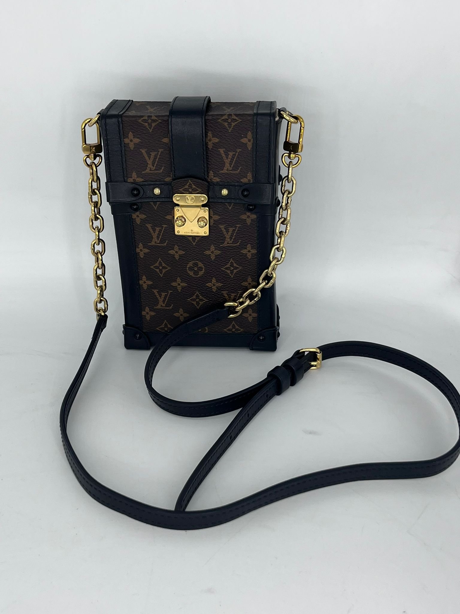 Icónico bolso Louis Vuitton modelo Baúl Verticale, inspirado en los clásicos trunks de la maison. Incluye bandolera, combinando herencia, diseño exclusivo y funcionalidad moderna.