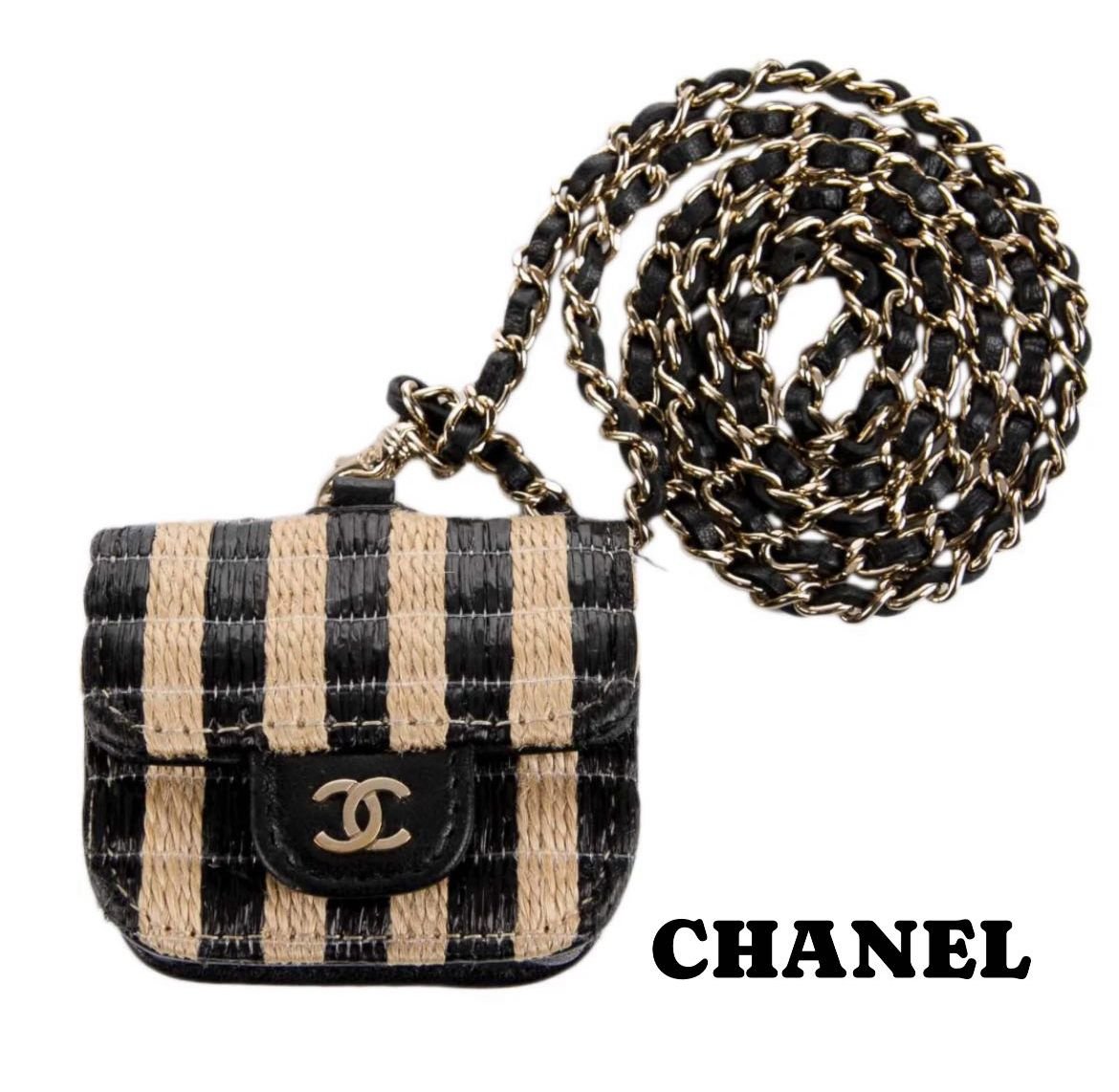 Estuche Chanel para AirPods Raffia 2021, elegante y protector, con caja original y diseño exclusivo.