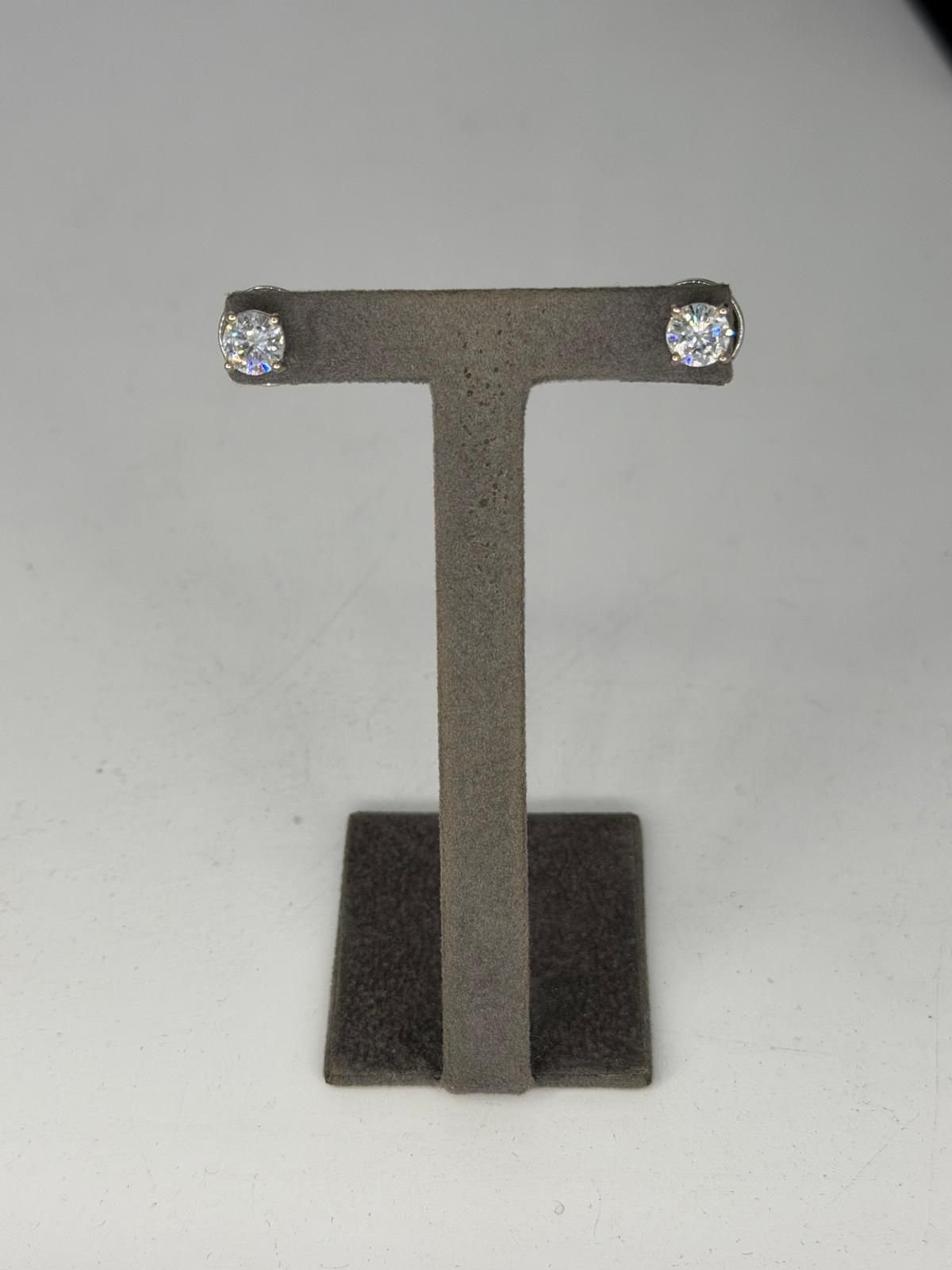 Exclusivo par de pendientes solitarios de oro blanco de 18 quilates, cada uno con un diamante de 0.95 quilates, ofreciendo un brillo excepcional y máxima elegancia.