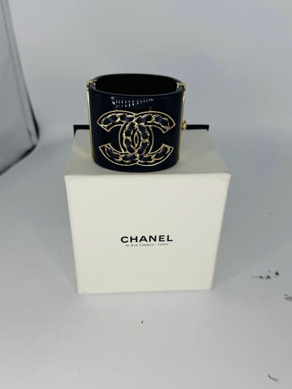 Pulsera Manchette Chanel con diseño icónico y caja original.